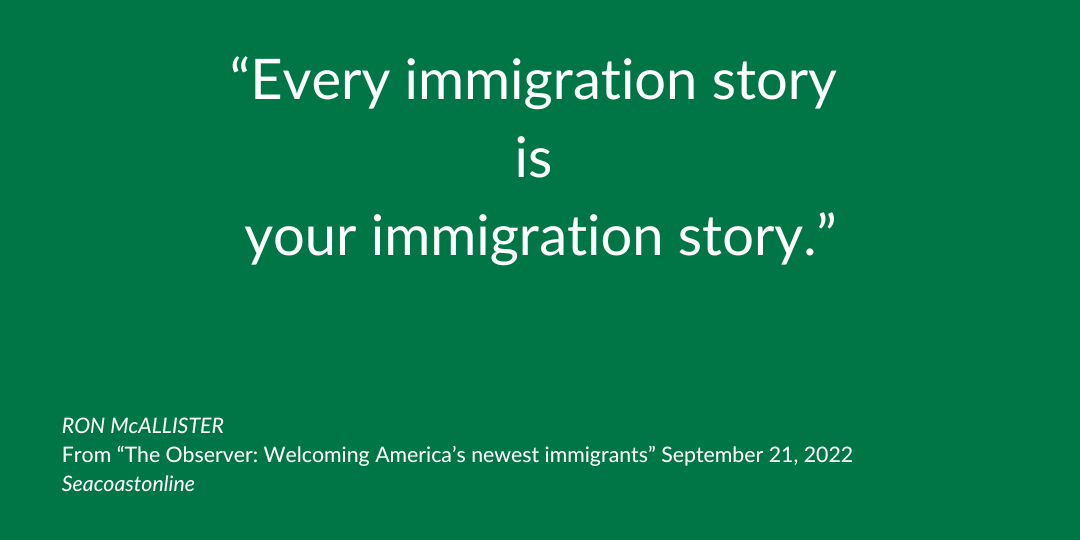 Tags monday quote, mondayquote, immigration stories, we are all immigrants, ron mcallister, secoastonline